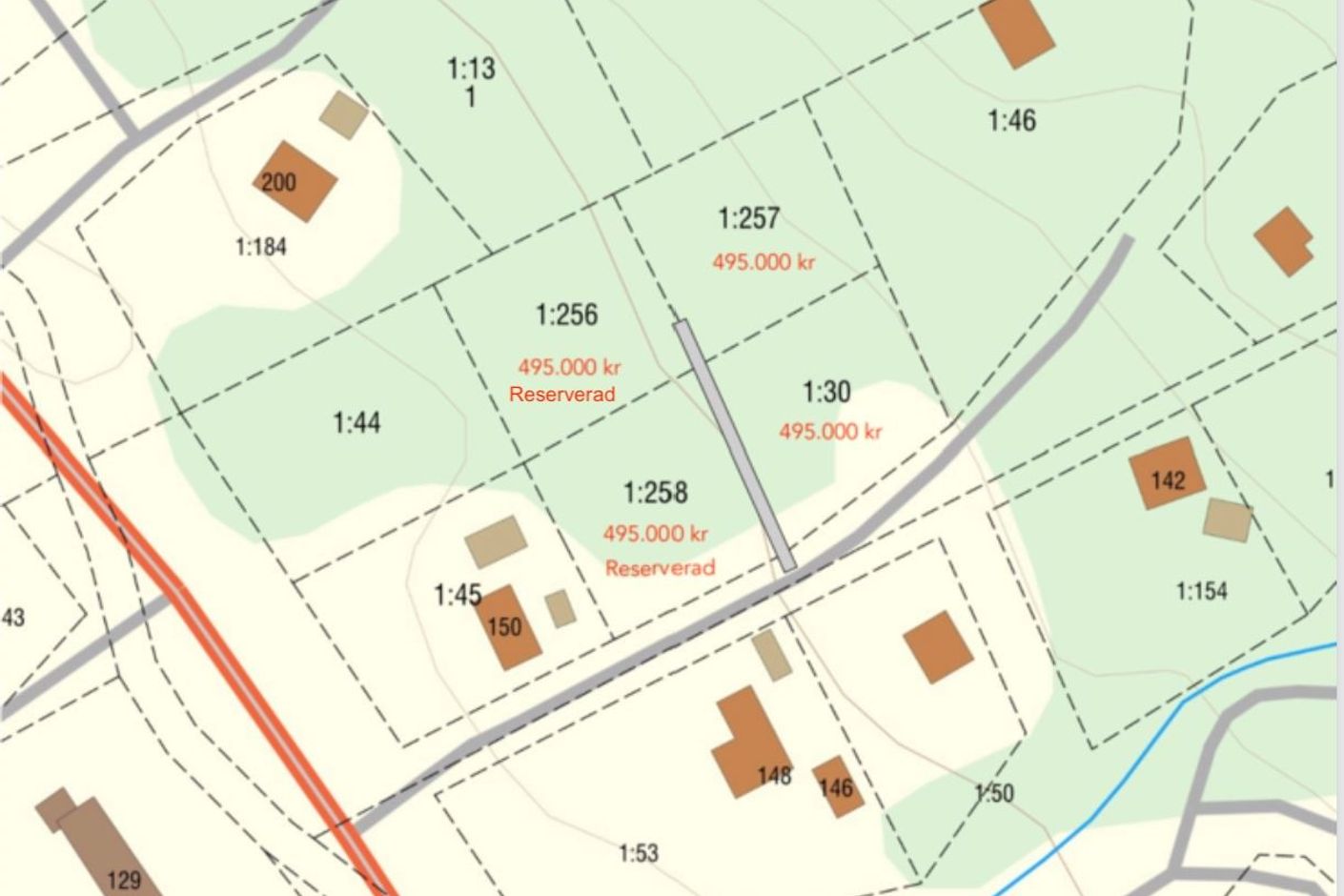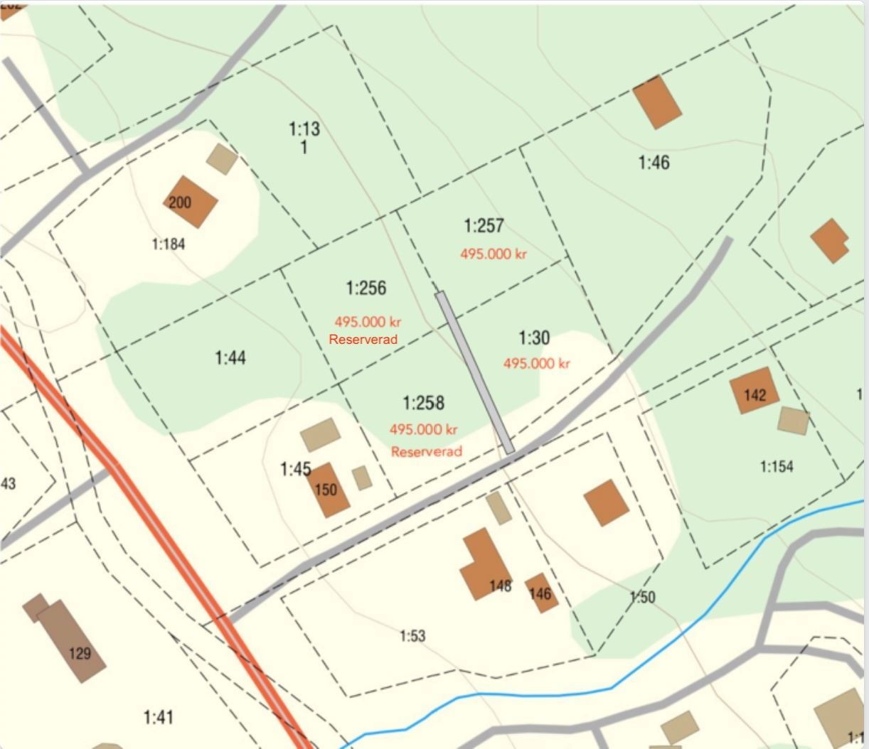 Byggrätten medger en huvudbyggnad på 175 kvm och en komplementbyggnad på 50 kvm. Väg kommer att anläggas enligt karta i samband med försäljningen, och tomterna är redan anslutna till områdets vattenförening. Anslutningsavgifter för både väg och vatten ingår i priset. El och fiber finns framdraget till området, och köparen ansvarar själv för anslutning samt kostnaden för detta. Även anläggning av avloppslösning ombesörjs av köparen.