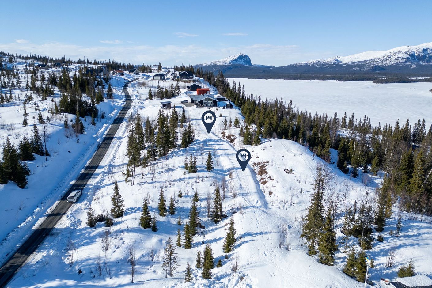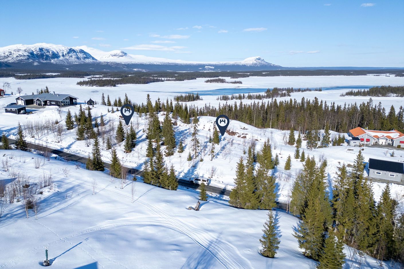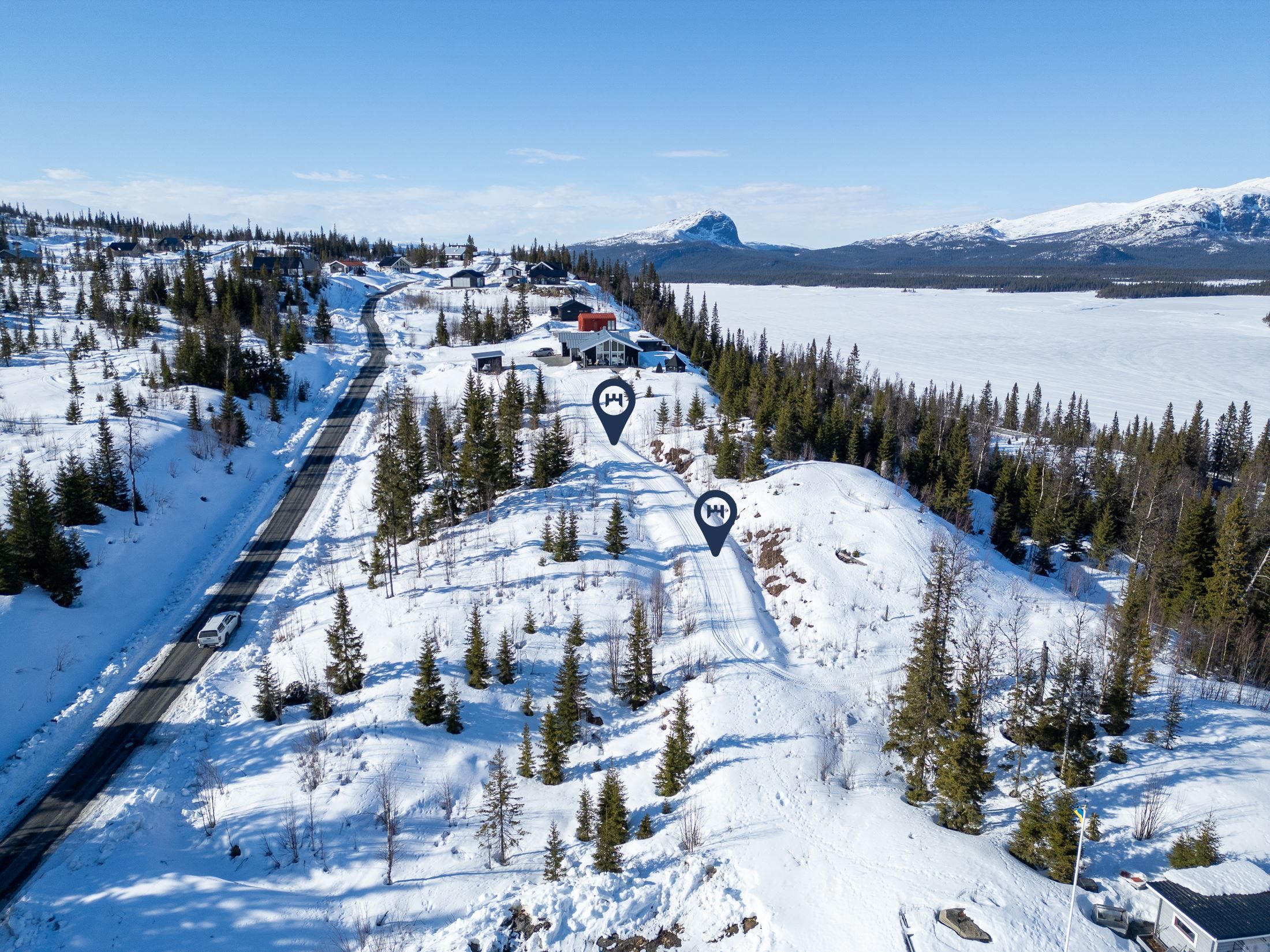 Väg och anslutningar för el och fiber kommer finnas vid tomtgräns, vilket erbjuder ett enkelt steg till ditt fjällboende. Inkopplingsavgift för vatten och avlopp tillkommer enligt kommunens taxa. Anslutningsavgift för el och fiber tillkommer. Bygg upp till 240 kvm, detaljplan ligger under "dokument".